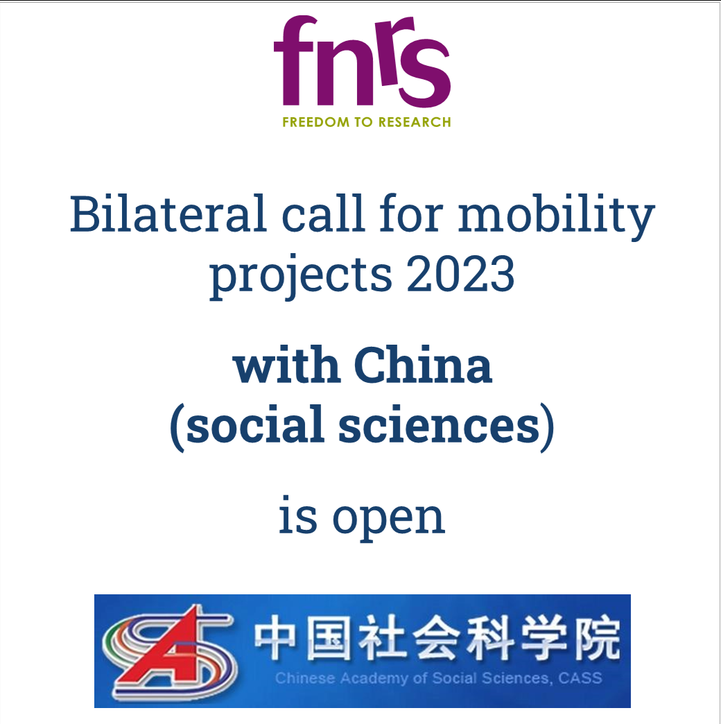 Opening of the bilateral call for mobility projects 2023 between the FNRS and China ("The Chinese Academy of Social Sciences - CASS").
