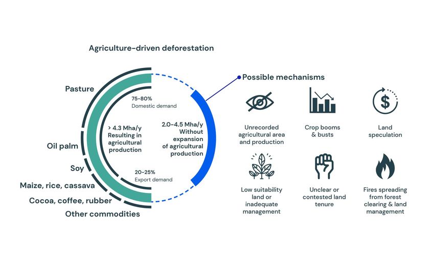 ➡ Les politiques relatives à la déforestation doivent tenir compte de la manière dont l'agriculture l'alimente, directement et indirectement. Le renforcement de la gouvernance des forêts et de l'utilisation des terres dans les pays producteurs est essentiel.