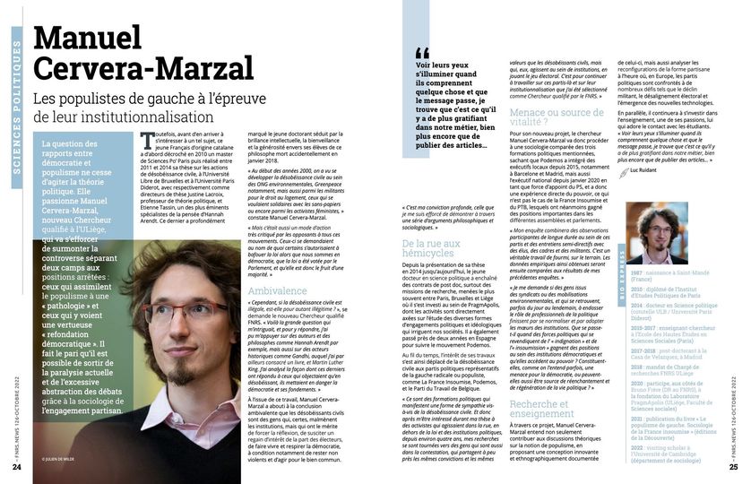 Félicitations à Manuel Cervera-Marzal, nouveau Chercheur qualifié FNRS à l'Université de Liège