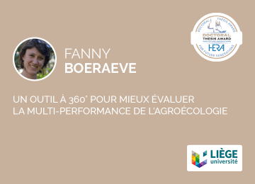 ? Elle a récemment remporté un HERA Doctoral Thesis Award for Future Generations 2022. Dans son travail, elle propose une grille d'évaluation alternative aux indicateurs de rendement, principalement utilisés dans l'évaluation des systèmes agricoles, et considère des critères environnementaux et sociaux grâce à un outil à 360° pour mieux évaluer la multi-performance de l'agroécologie développé dans le cadre de sa thèse.
