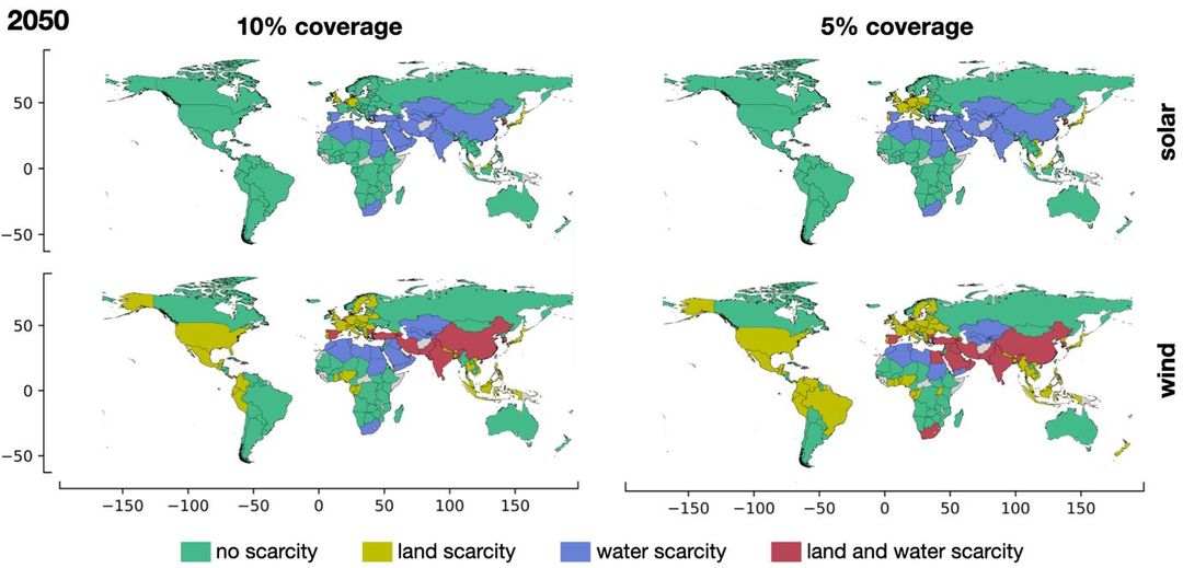 ➡ S’il est possible, d’un point de vue global, de répondre à la future demande par de l’hydrogène durable, moins de la moitié de la demande projetée pour 2050 en hydrogène carburant pourrait être à la fois produit et utilisé localement à l’aide de l’énergie éolienne ou solaire, en raison de la pénurie de terres ou d’eau.