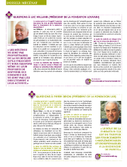 DOSSIER mÉCÉNAT QUESTioNS à LUC WiLLAME (PRéSiDENT DE LA FoNDATioN LoUVAiN) Le secteur privé est-il appelé à prendre que les chercheurs de l’université passent souvent plus intéressés par un thème une place de plus en plus importante avec des sociétés. Notre action n’a rien de recherche bien circonscrit, avec des dans le fnancement de la recherche à voir avec cela. Il ne faut pas confondre résultats attendus dans les deux ou trois universitaire ? contrat et mécénat. Les mécènes ne sont ans. Mais en recherche fondamentale, Luc Willame : Je renverserais plutôt la pas propriétaires de la recherche qu’ils on ne sait pas toujours bien où on va, question. Il existe pas mal de sociétés fnancent et nous essayons même de leur ni quand on obtiendra des résultats. Or qui ont intérêt à faire des dons liés à leur proposer de soutenir des domaines qui il est primordial de soutenir la recherche image, à jouer un rôle de citoyen respon- ne sont pas liés directement à leur acti- fondamentale. sable. Plutôt que de soutenir des tournois vité. Par exemple, la chaire Glaverbel est La quête de subside ne mange-t-elle de golf, pourquoi ne se tourneraient-elles consacrée à la civilisation européenne, ce pas trop le temps des chercheurs ? pas vers l’université pour rencontrer ce qui n’a rien à voir avec la fabrication du L. W. : En tout cas l’existence de la fon- Luc Willame souhait de visibilité ? D’autant plus que verre. La chaire Delhaize est centrée sur dation allège ce fardeau. C’est le Conseil les entreprises sont très sensibles au pro- l’obésité, qui a certes quelque chose à voir rectoral et le Bureau de la Fondation qui « lEs mécènEs blème de la qualité de l’enseignement et avec le commerce de l’alimentation, mais défnissent les critères de tous les projets. sont confrontées à la nécessité de trouver la chaire fait appel à un mélange trans- nE sont pas du personnel qualifé. Cela correspond aux versal de disciplines de recherche très Puis c’est l’équipe de la fondation qui propriétairEs intérêts à long terme de l’université, car la diverses. Notre approche permet ainsi de cherche un donateur intéressé. Le cher- cheur, lui, doit passer du temps à décrire dE la rEchErchE qualité de la formation nous préoccupe ne pas laisser sur le côté des disciplines son projet, mais la fondation l’aide à le qu’ils financEnt presque plus que l’aspect recherche. qui ont peut-être moins de visibilité en présenter de manière attrayante. Nous termes de résultats. Et nous EssaYons Le souci de visibilité des mécènes ne travaillons essentiellement par projets, risque-t-il pas de laisser à l’écart des Je crois que le vrai problème auquel nous que nous élaborons en fonction des mêmE dE lEur champs de recherche moins attrayants? sommes confrontés est de bien faire la dif- besoins et des souhaits de l’université et proposEr dE L. W. : Nous sommes très attentifs à faire la férence entre recherche appliquée et re- que nous proposons ensuite à des entre- soutEnir dEs distinction avec les contrats de recherche cherche fondamentale. Les mécènes sont prises ou à des particuliers intéressés. domainEs qui nE sont pas liés En savoir plus : dirEctEmEnt à www.uclouvain.be/fondation-louvain.html lEur activité.» QUESTioNS à PiERRE DRioN (PRéSiDENT DE LA FoNDATioN ULB) Le secteur privé est-il appelé à prendre bien les sciences de la vie, l’archéologie, une place de plus en plus importante l’astrophysique que les mathématiques. dans le fnancement de la recherche Vos lecteurs verront la diversité des exper- universitaire ? Et pourquoi créer une tises et seront enthousiasmés, comme je entité distincte? l’ai été, par la lumière sur l’avenir qu’ils Pierre Drion : Le rôle de la Fondation apportent. ULB est de trouver les fnancements complémentaires et indispensables à La quête de subside ne mange-t-elle la recherche de pointe. Il est apparu, à pas trop le temps des chercheurs ? l’instar de beaucoup d’universités dans P. D. : Le rôle de la fondation ULB est com- le monde, qu’un instrument uniquement plémentaire au travail des chercheurs et dédié à cette mission était plus effcace et je pense qu’en soulageant ceux-ci d’ une plus clair pour les donateurs. grande partie des longues démarches Pierre Drion auprès des donateurs, cela rendra au Les Alumni, les Amis de l’université, les contraire leurs efforts plus effcaces. « lE rôlE dE la entreprises, les fondations ont un rôle fondation ulb majeur à jouer pour aider et stimuler les Beaucoup de chercheurs consacrent du brillants jeunes chercheurs que comptent temps à trouver les fnancements néces- Est dE trouvEr nos universités et en l’occurrence l’ULB. saires et ceci à l’intérieur de l’université lEs financEmEnts Progressivement, mais sûrement, les do- aussi bien qu’à l’extérieur. Ce n’est pas nateurs potentiels seront convaincus de nécessairement une perte de temps pour complémEntairEs participer ainsi à l’avenir de notre société. eux. Il leur faut, en effet, bâtir un projet Et indispEnsablEs synthétique et cohérent qui nécessite une Le souci de visibilité des mécènes ne à la rEchErchE risque-t-il pas de laisser à l’écart des réfexion en profondeur et peut dès lors champs de recherche moins attrayants? les aider à clarifer leurs idées. dE pointE.» P. D. : Je ne pense pas et j’invite vos lec- D’ailleurs, dans beaucoup d’universités teurs à regarder sur notre site les magni- américaines, la sollicitation de fonds En savoir plus : fques clips vidéo de huit des talents que fait partie intégrante du travail des cher- www.fondation-ulb.org. nous souhaitons aider. Ils couvrent aussi cheurs.