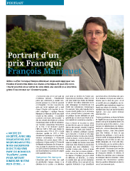 PORTRAIT Portrait d’un prix Francqui François maniquet Grâce au Prix Francqui, François Maniquet va pouvoir appliquer ses théories d’économie dans des études empiriques. Et peut-être dans l’avenir pourra-t-on se vanter de vivre dans une société plus équitable, grâce à ses travaux sur l’économie juste… « L’économie juste est le seul sujet qui peut varier en fonction de l’angle sous que le bien-être est le bonheur des gens. m’intéresse vraiment… Probablement lequel elle est considérée. « Mais ce n’est Or, le bonheur n’est pas une notion co- parce que, adolescent, je voulais com- pas pour autant que toutes les théories hérente avec le choix des gens : on vit prendre pourquoi il y a tant de pauvreté se valent ! Des idées cohérentes sur le en société, avec ses obligations, ses res- et d’inégalités. J’ai alors rencontré des plan ‘idéologique’ ne résistent pas à la ponsabilités (par exemple par rapport au gens qui m’ont expliqué qu’il y avait réalité des mécanismes économiques. travail, aux enfants, à la famille…) : nous moyen d’étudier cette question de ma- Par exemple, l’idée selon laquelle tout le sacrifons donc tous une part de bonheur nière scientifque », explique François monde devrait profter de la croissance ‘égoïste’, sans pour autant diminuer Maniquet. Ce Namurois de 45 ans, marié est un concept facile à concevoir, mais notre bien-être… » et père de trois enfants – et comédien en pratique, aucune institution ne peut confrmé à ses heures (lire encadré) – a garantir que ce sera le cas. Il faut en tes- Et entre ces extrêmes, on trouve la théorie dès lors entamé des études en sciences ter la validité et la cohérence concrètes. » de l’égalité des ressources des gens pour économiques dans sa ville de naissance, Dans la théorie de la justice, la notion mener la vie qu’ils souhaitent mener. Ces aux Facultés universitaires Notre-Dame de bien-être des gens est centrale. Il doit ressources peuvent être externes – leurs de la Paix. Il fut doctorant aspirant dès lors être mesuré ; ensuite, il s’agit de revenus, les infrastructures, les déplace- FNRS de 1989 à 1995, puis chargé de développer des outils pour évaluer les ments, etc. – et donc infuençables par les recherches entre 1995 et 1997 et enfn effets de certaines politiques sociales politiques menées ; mais elles peuvent « on vit En chercheur qualifé de 1997 à 2005. sur le bien-être. « Il existe un très large aussi être ‘internes’, et donc ne pas société, avEc sEs Actuellement professeur à la faculté des éventail de théories du bien-être. Certains dépendre des politiques : c’est le cas de la bonne santé, du bagage génétique, de obligations, sEs Sciences économiques à l’Université le lient au revenu ; mais les besoins sont l’intelligence, du fait d’être né dans une Catholique de Louvain depuis 2005, et très variables d’une personne à l’autre, rEsponsabilités : professeur à temps partiel à l’Université selon les réalités de chacun, mais aussi famille stimulante, etc. C’est cette théo- nous sacrifions de Warwick au Royaume-Uni, il trouve en- selon leurs choix. Prenons le cas de deux rie du bien-être qui me semble coller le mieux aux réalités économiques de la so- core le temps de poursuivre ses travaux jumeaux, tous deux célibataires : l’un donc tous unE au CORE (Center for Operations Research travaille à temps plein, l’autre à temps ciété actuelle. L’économie juste consiste part dE bonhEur and Econometrics) sur, en fn de compte, partiel – donc avec un revenu moindre – donc à essayer d’équilibrer les paniers mais mise sur les loisirs. Leur différence de ressources externes et internes, et notre quotidien à tous. ‘égoïstE’, sans de revenus n’implique pas pour autant d’utiliser les premières pour compenser pour autant Compenser les manques de différence de bien-être... Le revenu les manques dans les secondes. » Ainsi, diminuEr notrE L’économie juste est donc son sujet ne semble donc pas un bon indicateur. construire des infrastructures sportives de prédilection. Puisque chacun a sa A l’autre extrême, il y a ceux qui ont une dans les quartiers défavorisés va dans le biEn-êtrE… » défnition de la « justice », sa défnition approche hédoniste et qui considèrent sens d’une économie juste.