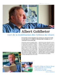 FNRS_news // Décembre ‘10 Albert Goldbeter L’art de la modélisation des rythmes du vivant Comprendre la base moléculaire des processus qui rythment le monde du vivant grâce à la modélisation théorique, Albert Goldbeter en a fait l’œuvre de sa vie de chercheur. Passionné par les processus de régulation cellulaire, expérimentales, les bases moléculaires des rythmes le lauréat du prix Dr A.De Leeuw-Damry-Bourlart pour associés aux régulations cellulaires. Le but de la les sciences exactes fondamentales a travaillé sur modélisation est de comprendre le mécanisme qui des phénomènes aussi variés que les oscillations sous-tend ces phénomènes, de faire des prédictions du calcium, les communications intercellulaires, les et de relier des comportements dynamiques entre rythmes circadiens, ou encore le cycle cellulaire. eux. Ses recherches, bien que fondamentales, ont un Aujourd’hui Directeur de l’Unité de Chronobiologie lien direct avec certains aspects cliniques comme théorique au sein du service de Chimie physique l’étude des troubles physiologiques associés à un et de Biologie théorique – qu’il co-dirige- de l’ULB, dysfonctionnement de l’horloge circadienne, l’étude Albert Goldbeter est considéré comme un précurseur de la transition d’un état de quiescence à un état de dans le domaine de la biologie des systèmes. Ses prolifération cellulaire ou encore la chronopharma- travaux mêlent chimie, physique, mathématiques et cologie, soit l’étude de l’effet du temps d’administra- sciences de la vie. Ils consistent à étudier, à l’aide tion d’un médicament sur son effcacité. de modèles mathématiques fondés sur les données « Quand le rythme en chaos se change ordre et désordre font mélange la périodicité se range et l’attracteur devient étrange » Albert Goldbeter