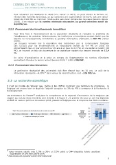 Pour actualiser ces montants de 2009 à la valeur en 2013, on peut utiliser la formule de révision des marchés de travaux, ce qui conduit à une augmentation de 9,2%, soit une valeur totale de 2.920 M€ au minimum (c’est-à-dire sans tenir compte des nouveaux besoins depuis 2009). Il en résute que la somme minimale nécessaire au grand entretien serait de 43,8 M€/an. 3.2.2 Financement des investissements immobiliers Pour faire face à l’accroissement de la population étudiante et résoudre le problème de l’obsolescence de certaines infrastructures, les institutions universitaires avaient établi que les besoins en investissements immobiliers et grandes rénovations s’élevaient à 395 M€ (valeur 2009). Les moyens annuels mis à disposition des institutions par la Communauté française (art. 125 §2) pour les investissements et rénovations étaient de 4,4 M€ en 2009. En convertissant ceux-ci (par emprunt sur 20 ans à un taux de 6,3 %) en un capital à investir (49 M€), on trouvait un taux de couverture de ce capital par rapport aux besoins énoncés de 12,4 %. Un calcul d’actualisation et la prise en compte de l’augmentation du nombre d‘étudiants permettent d’évaluer le besoin actuel (besoins 2009 * 1,28) à 506 M€ . 3.2.3 Financement des rénovations Le patrimoine réactualisé des universités doit être rénové tous les 30 ans. Le coût de la 15 rénovation représente ~4,33% de la valeur de reconstruction, soit ~126 M€/an. 3.3 La recherche scientifique Il n’est pas inutile de rappeler que, même si les chiffres montrent une tendance de croissance, la Belgique est encore bien en deçà de l’objectif européen de 3% du PIB à consacrer à la Recherche & Développement. 16 Les indicateurs de l’OCDE analysant la compétence et la capacité d’innovation de la Belgique par rapport aux autres états membres sont donnés à la figure 6 ; le premier de ceux-ci, soit les dépenses en R&D du secteur public et du secteur privé, placent la Belgique sous la moyenne des états membres. 15 Valeur moyenne calculée entre 3,33% en 2014, et 5,33% estimé en 2044 (hypothèse linéaire considérant l’augmentation de 10% entre 2009 et 2014) 16 http://www.oecd.org/sti/sti-outlook-2012-belgium.pdf 8