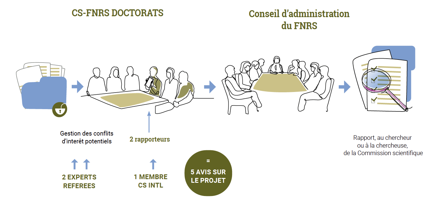 - The CS-FNRS Doctorates are made up of FWB members [1], as well as a HFWB President, also chairing the corresponding CS-INTL. Each project presented to the CS-FNRS Doctorates receives the opinion (remotely, before the CS meeting) of 2 expert-referees chosen by the candidates, and of a member of the corresponding CS-INTL, chosen by the F.R.S.-FNRS and validated by the President of the CS.