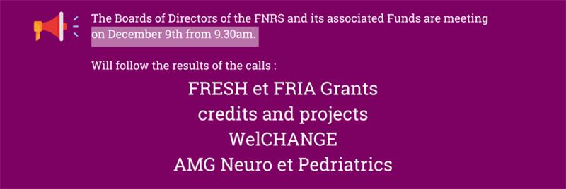 09 December 2025On December 9, 2025, the FNRS Board of Directors awarded a Research Credit to the following projects . The current presented list of...