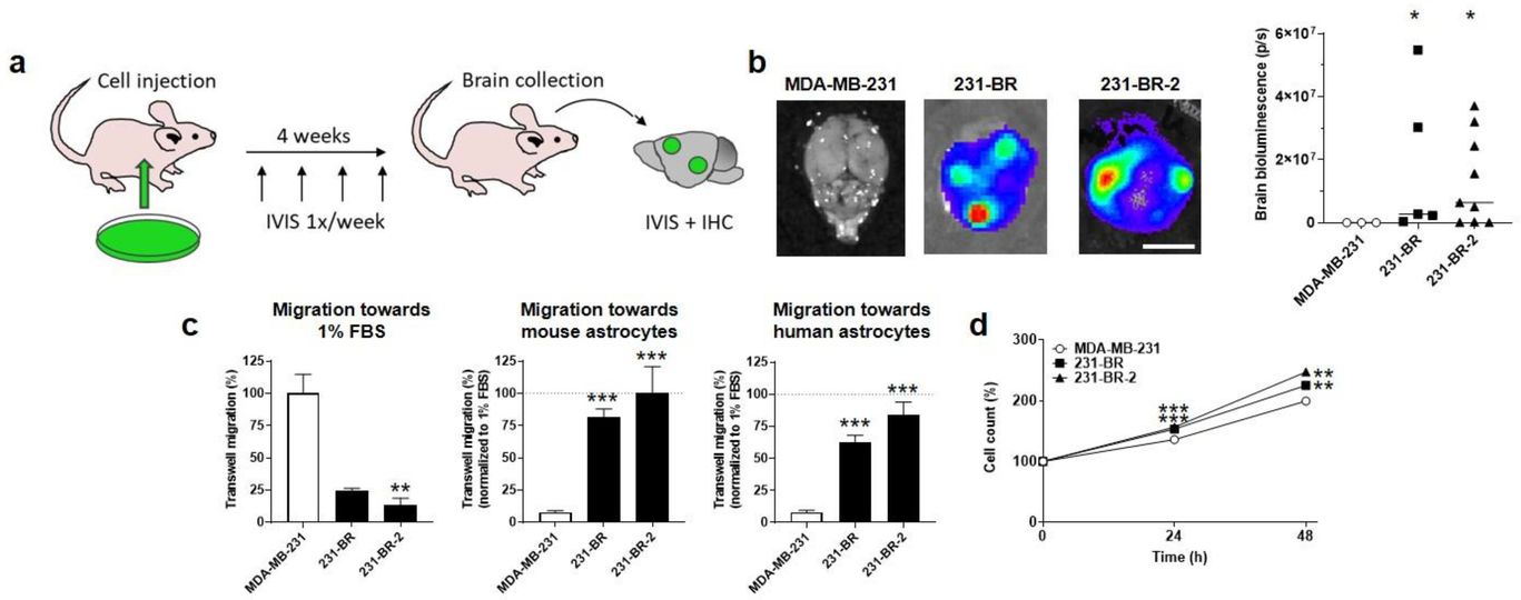 ➡ Ils y expliquent qu'ils sont parvenus à identifier un senseur responsable de l’arrêt dans le cerveau des cellules tumorales de cancer du sein, ce qui leur permet de développer des métastases cérébrales.