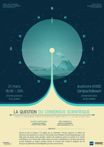 se retrouvent dans le cadre du Printemps des Sciences 2022 pour présenter les éléments philosophiques, scientifiques et pratiques de la question du consensus scientifique. Qu’est-ce que la science ? Et quelle est sa méthode ? Pouvoir apporter un début de réponse à ces questions, et cela par l’entremise d’une réflexion d’ordre philosophique, c’est déjà jeter les bases d’une possible relation de confiance entre la société et le monde scientifique. Car à l’heure des « fake news » et autres « infodémies », il est plus que jamais crucial d’adopter un regard critique, lucide, et surtout bien outillé et préparé, sur les discours (à prétention) scientifique(s) que nous rencontrons.