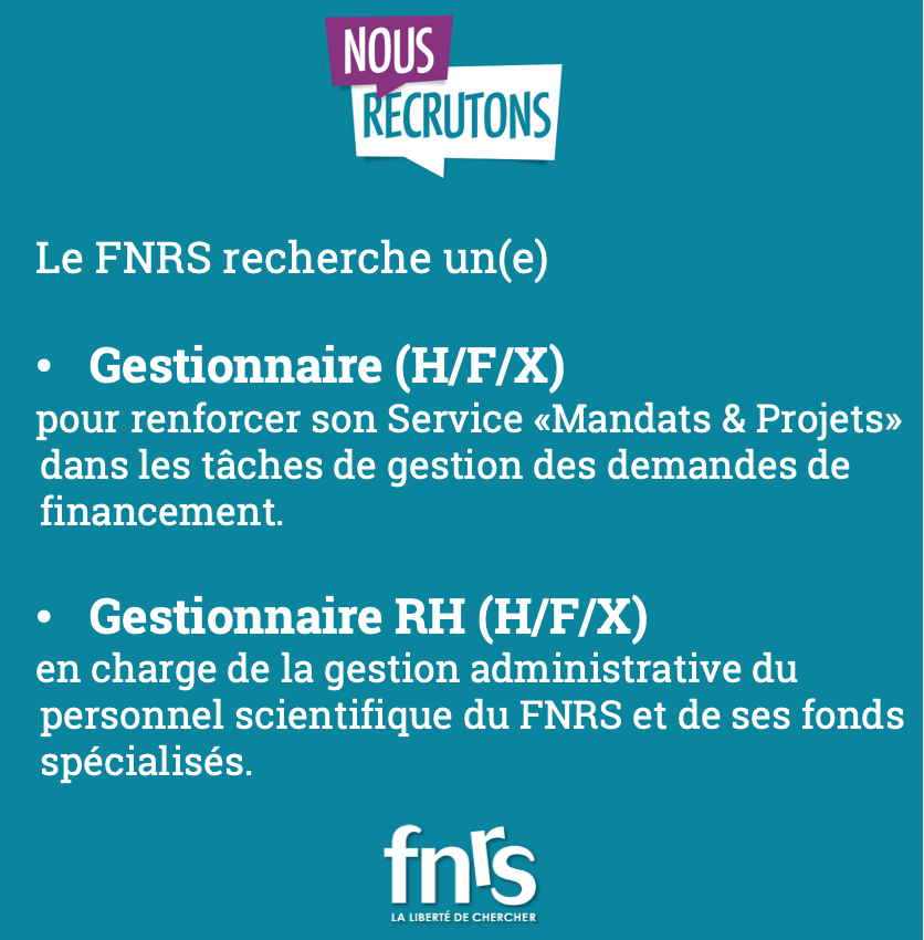 - Gestionnaire RH (H/F/X) en charge de la gestion administrative du personnel scientifique du FNRS et de ses fonds spécialisés. Plus d'infos...