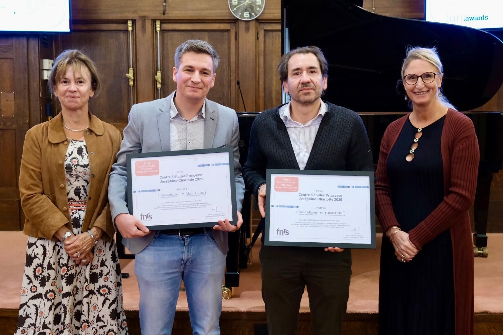 • le Centre d’études Princesse Joséphine-Charlotte Award est remis à l'équipe composée de Marius Gilbert, Professeur et Vice-recteur à la recherche à l'ULB, et de Simon Dellicour, Chercheur qualifié FNRS à l'ULB, pour ses travaux permettant de mieux comprendre les facteurs environnementaux impactant la distribution et la dynamique de propagation des épidémies virales.