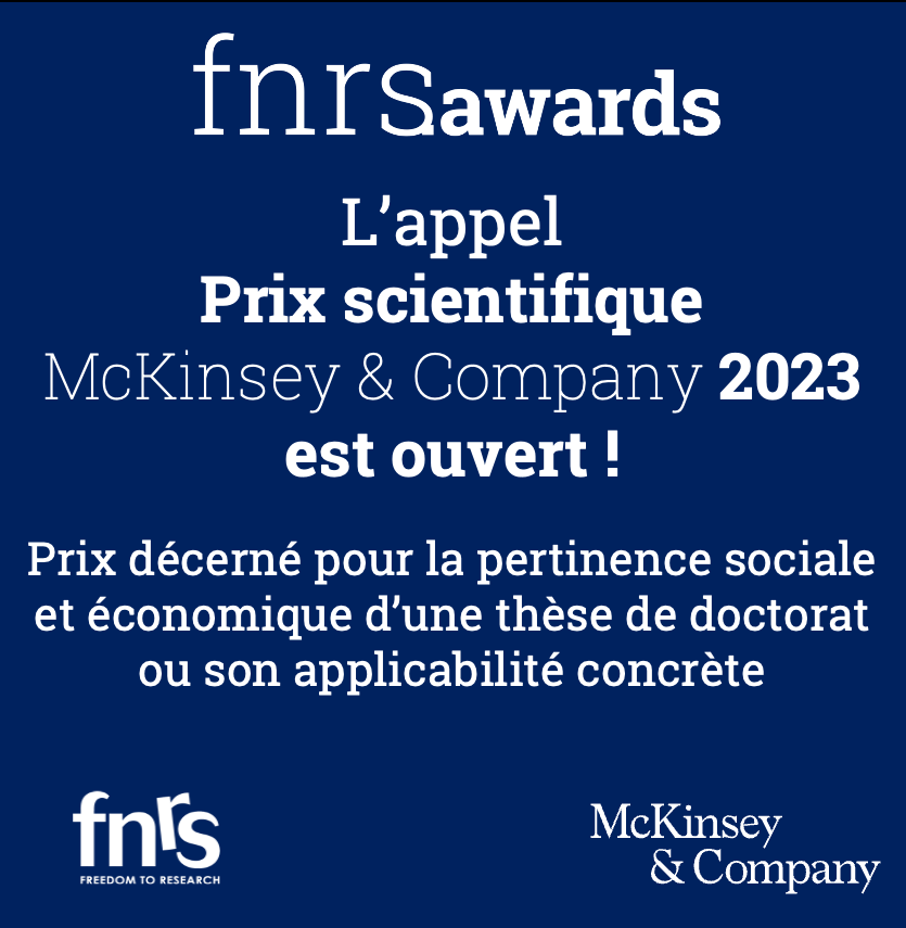 Les candidatures doivent parvenir à l'adresse prix@frs-fnrs.be pour le 1er mars 2023 à minuit (heure de Bruxelles) au plus tard.