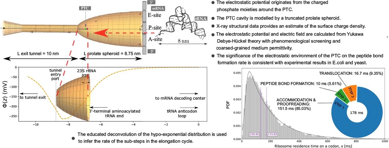 Un modèle géométrique simple de l'environnement électrostatique autour du centre catalytique du ribosome et sa signification pour la cinétique du cycle d'élongation