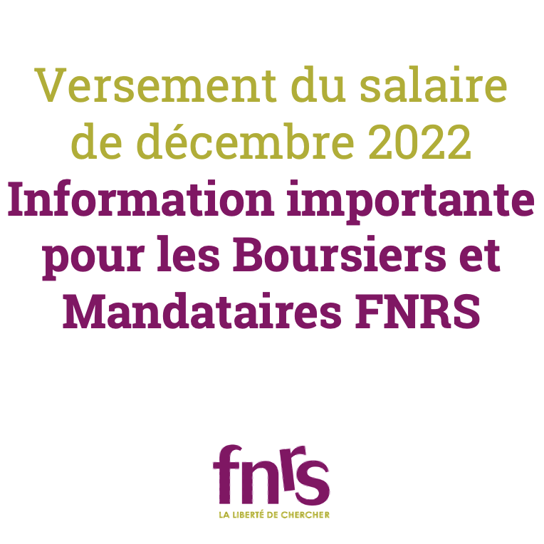Comme chaque année, les salaires des boursiers et mandataires FNRS de ce mois de décembre seront versés le premier jour ouvrable de l’année prochaine, soit le 2 janvier.